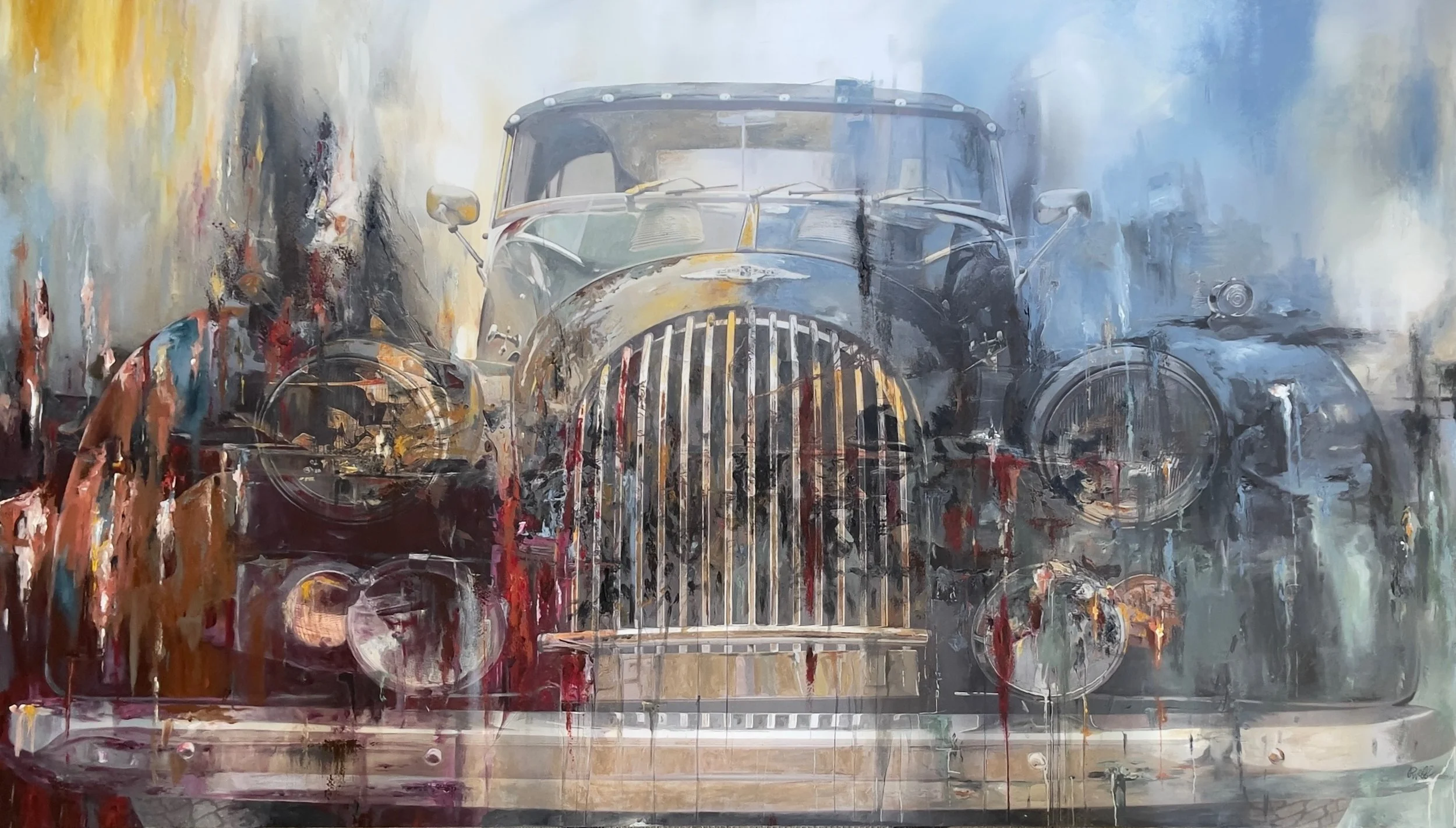 A classically trained artist, Webb is known for his disciplined, grid-based process. Each composition begins as a precise drawing rendered one square inch at a time onto handcrafted wooden panels. He then builds depth through multiple layers of acrylic paint and protective finishes, resulting in works that balance technical clarity with painterly restraint. While automobiles remain a defining subject, his practice extends to motorcycles, aircraft, and explorations of material itself.